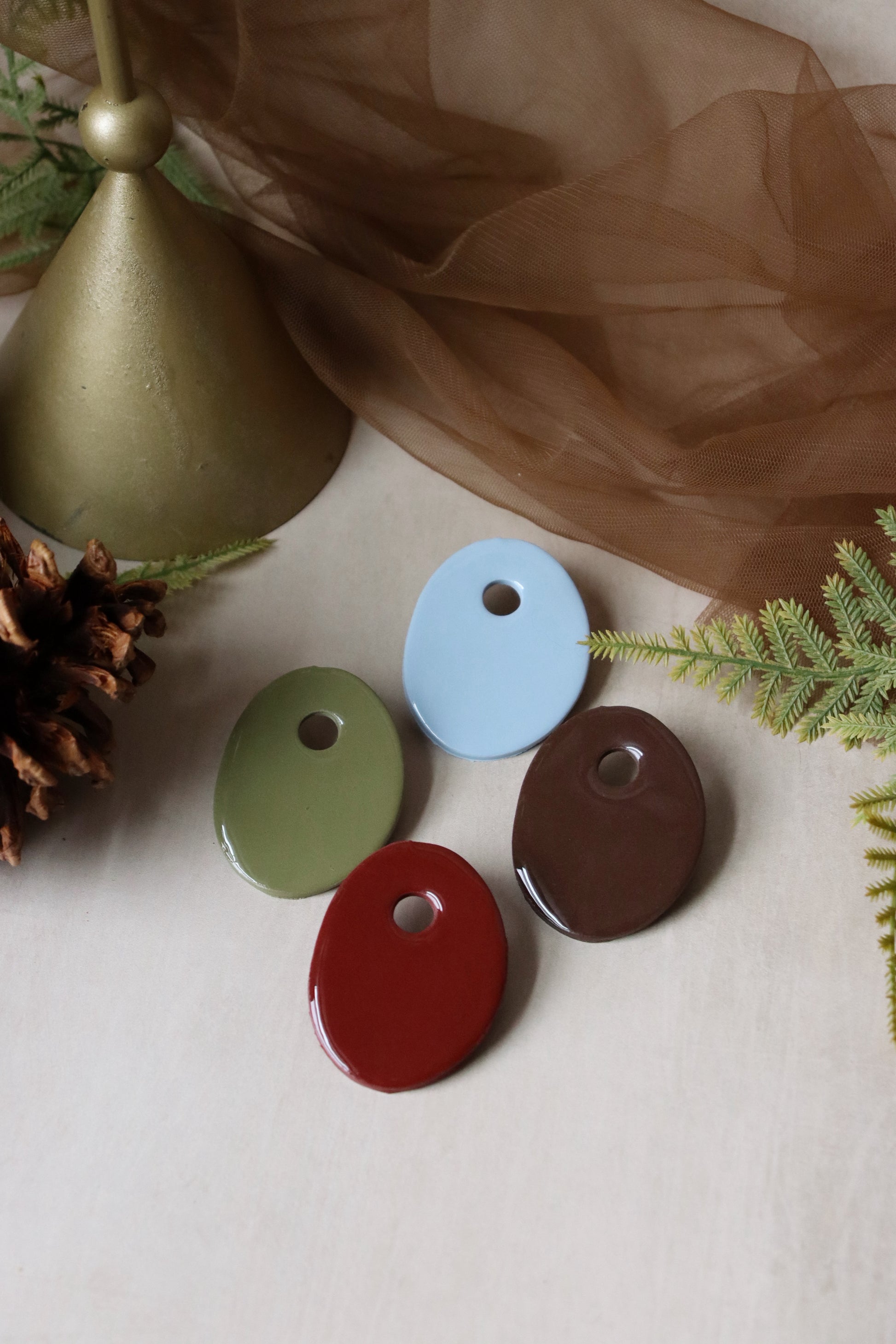 Handcrafted with polymer clay, each pair is made with stainless steel flat earring posts and finished with resin for a nice shine.